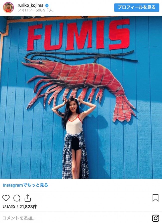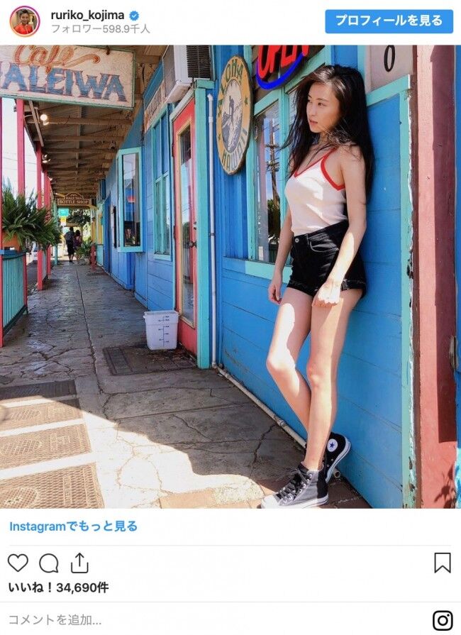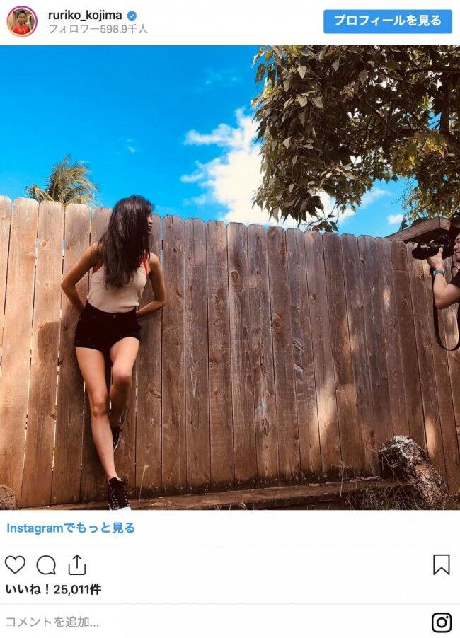 タレントの小島瑠璃子が15日、ショートパンツを着用した美脚ショットを公開。